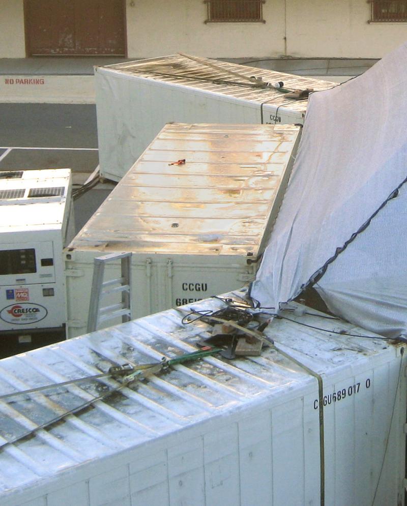 No fabrication was involved with any of the structural elements. The entire structure was assembled in three days, from the delivery of the containers to the installation of the tent fabric.
